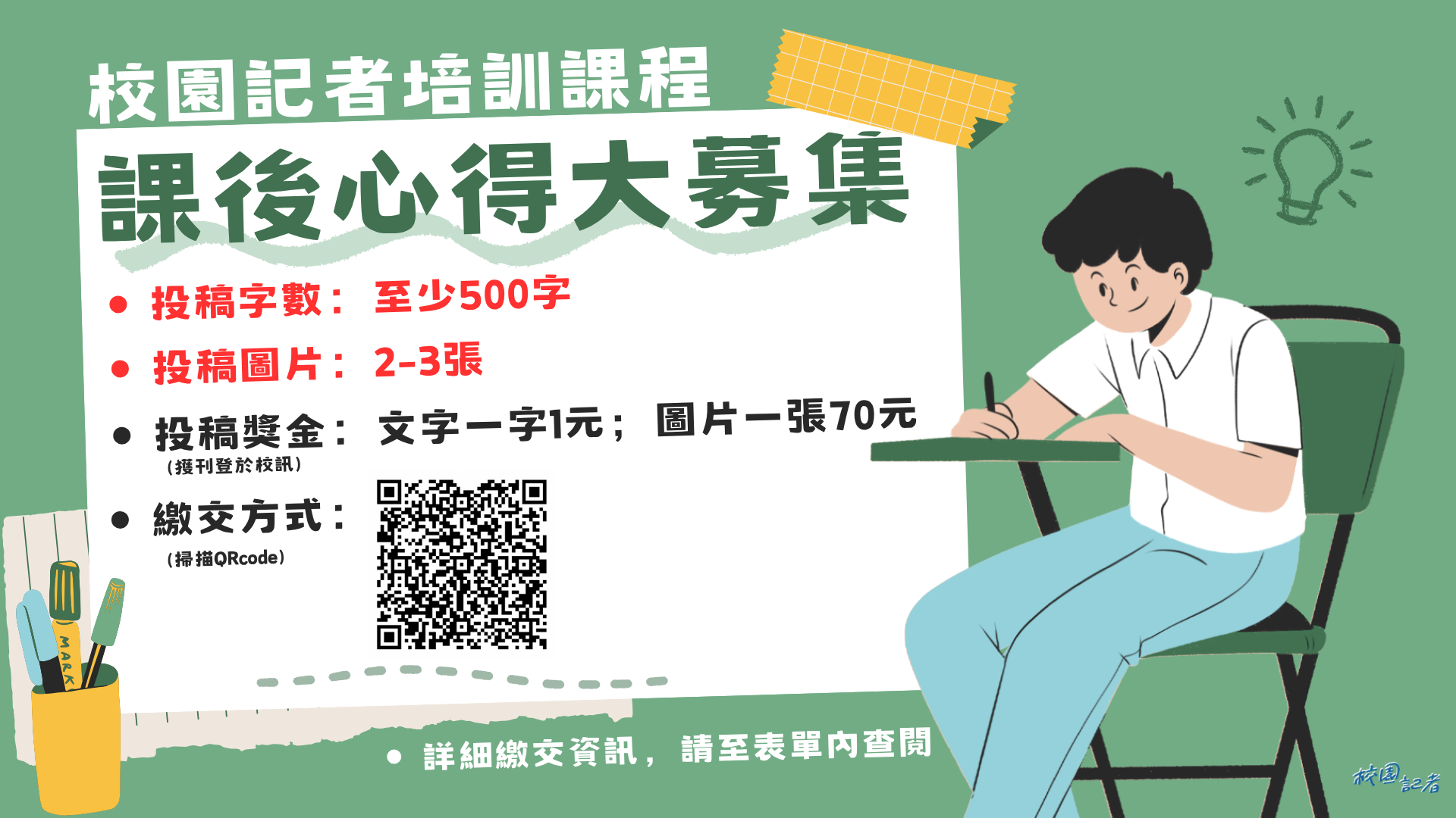 - 需參加培訓課程,未受培訓者,將撤銷領取校園記者獎金之資格。
